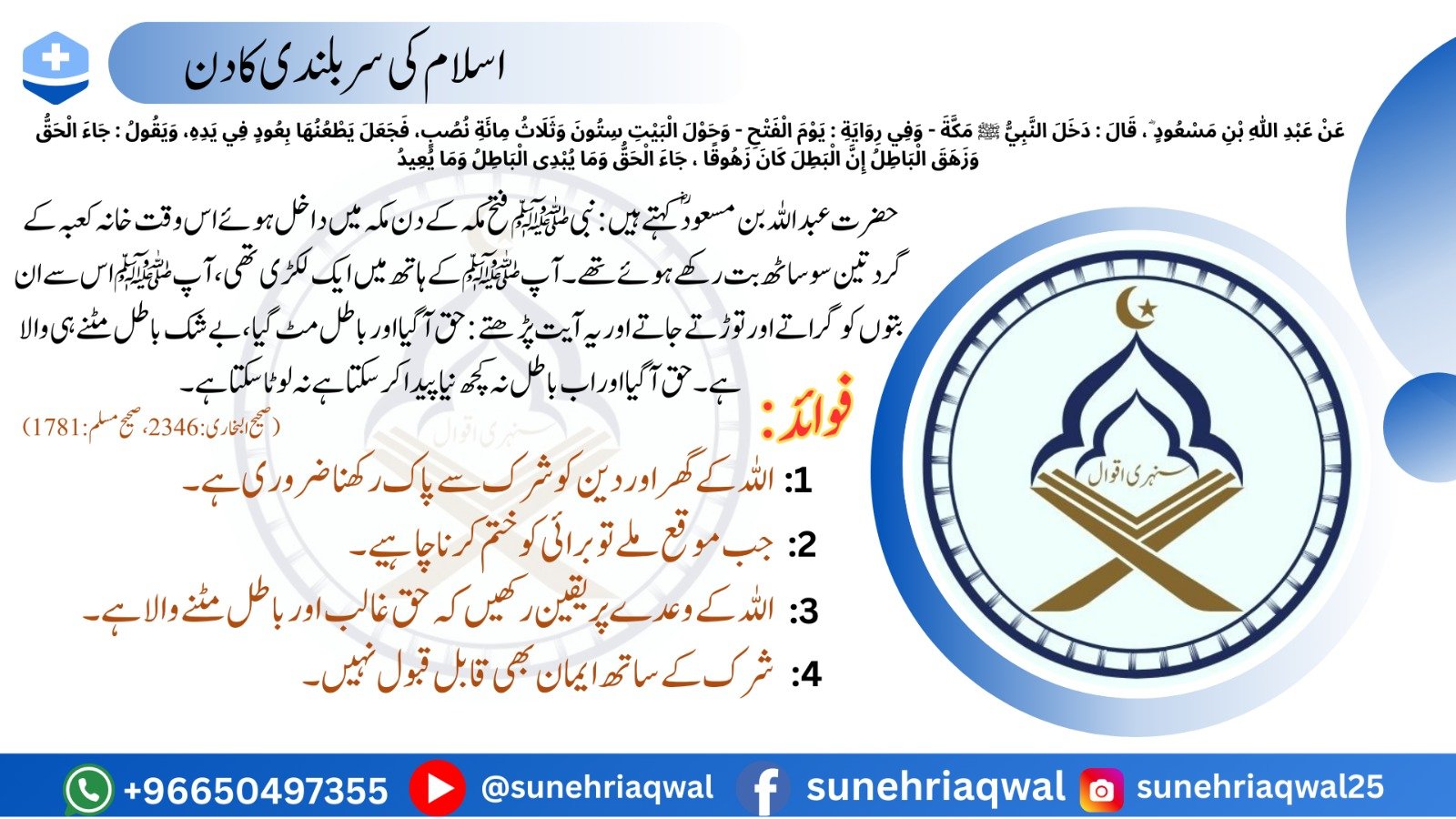 اسلام کی سربلندی کا دن ( صحیح البخاری – 2346 صحیح مسلم – 1781 )