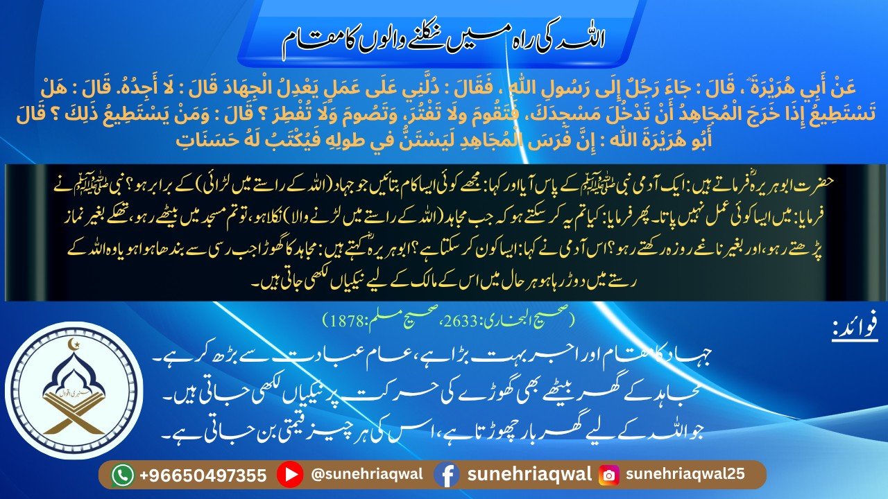 اللہ کی راہ میں نکلنے والوں کا مقام( صحیح البخاری – 2633,صحیح مسلم – 1778)