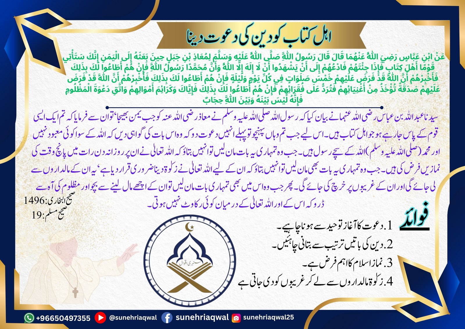 اہل کتاب کو دین کی دعوت دینا (صحیح بخاری 1496 صحیح مسلم 19)