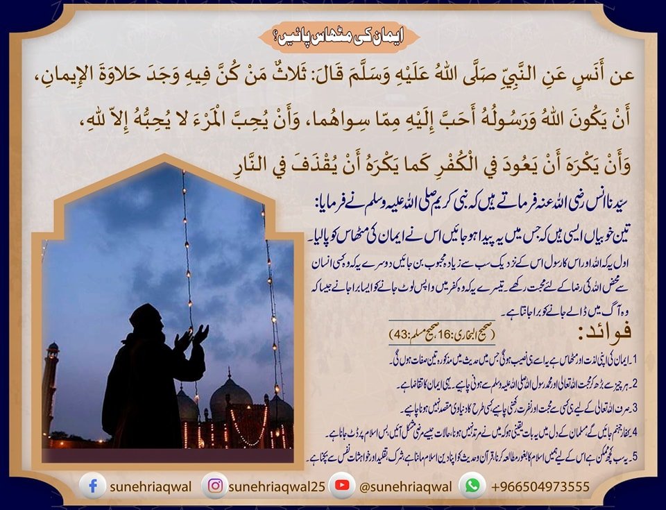 ایمان کی مٹھاس پائیں ؟( صحیح البخاری  16 صحیح مسلم – 43)