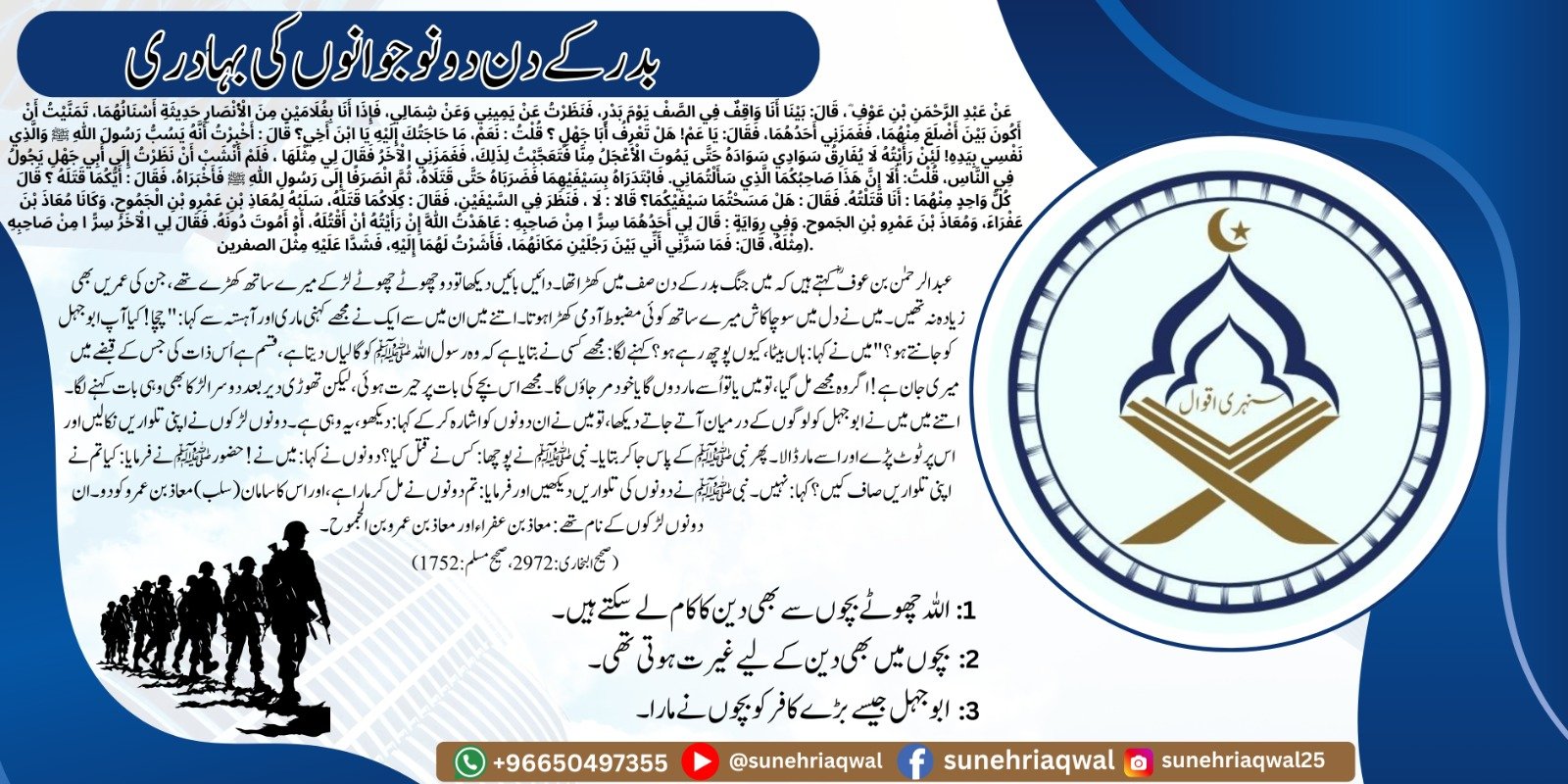 بدر کے دن دو نوجوانوں کی بہادری (صحیح بخاری 2972 صحیح مسلم 1752)