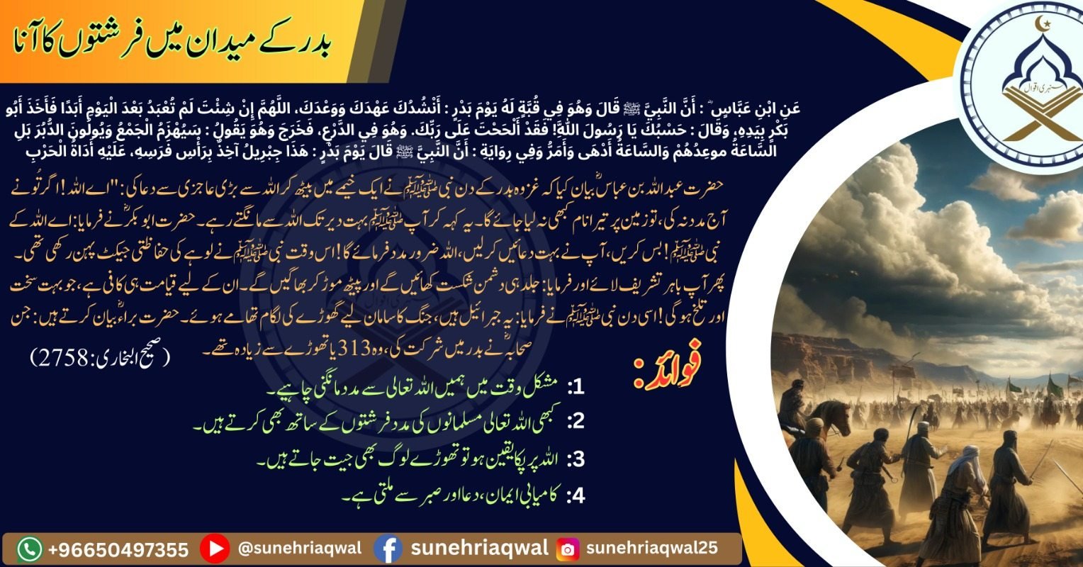 بدر کے میدان میں فرشتوں کا آنا( صحیح البخاری – 2758 )