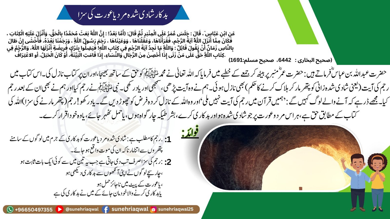 بد کار شادی شدہ مرد یا عورت کی سزا ( صحیح البخاری – 6442 صحیح مسلم – 1691)