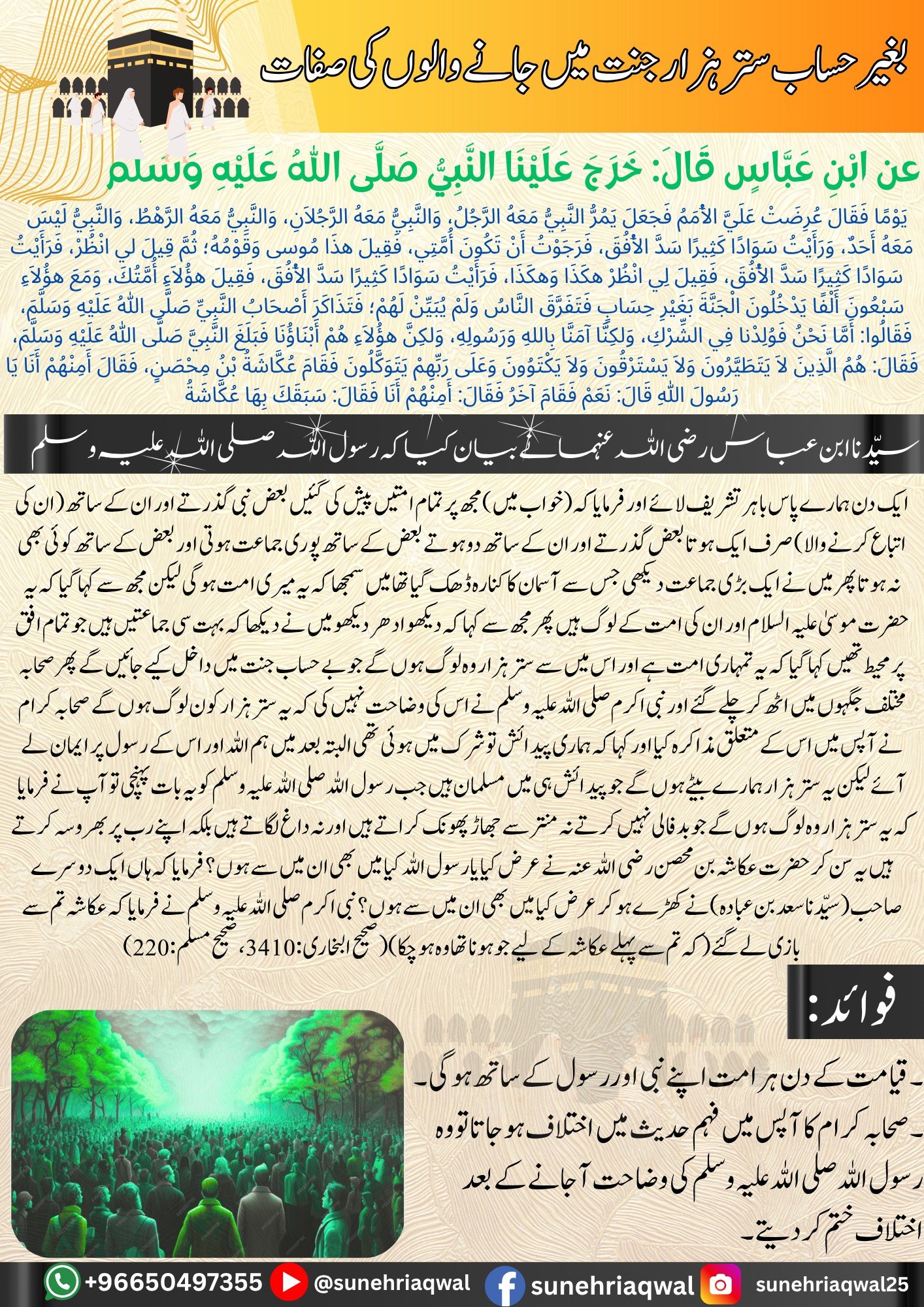 بغیر حساب 70 ہزار جنت میں جانے والوں کی صفات (صحیح بخاری 3410)