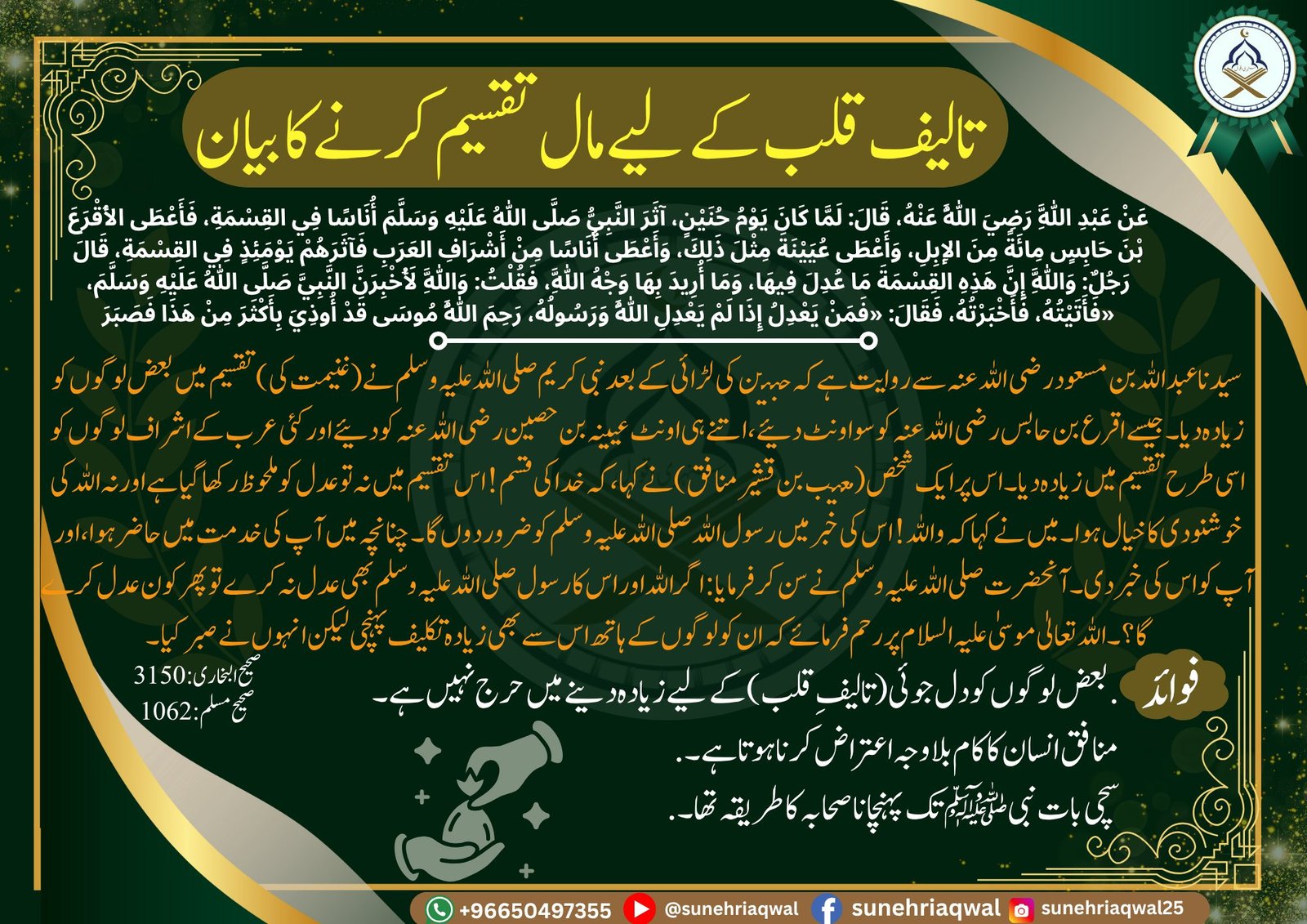 . تالیف قلب کے لیے مال تقسیم کرنے کا بیان( صحیح البخاری – 3150 صحیح مسلم -1062 )