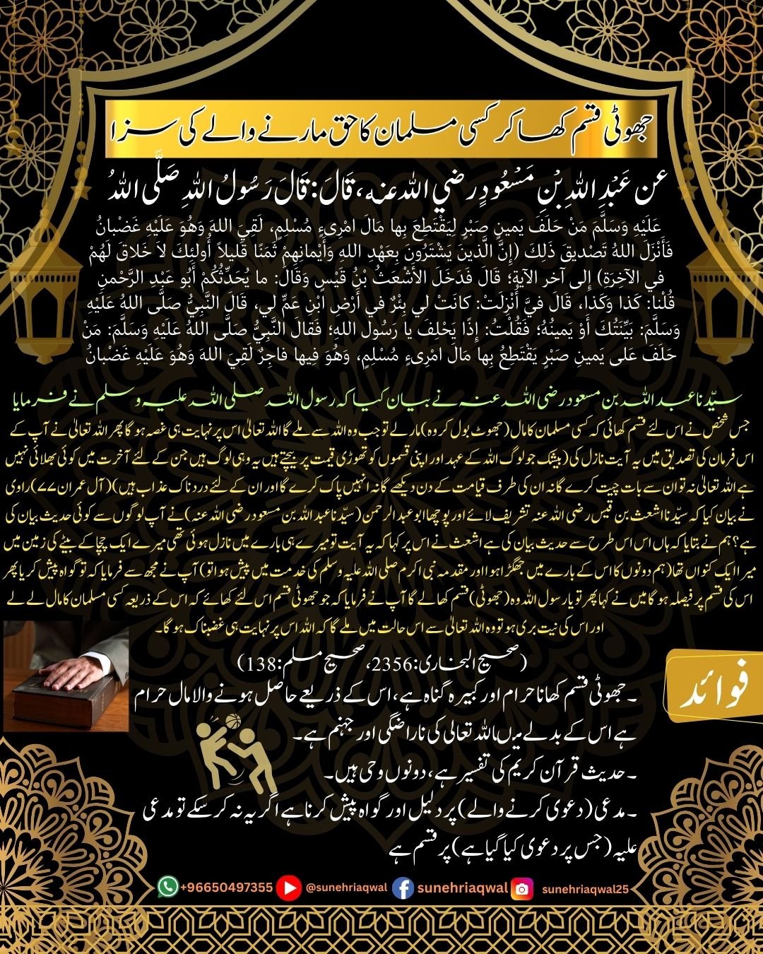 جھوٹی قسم کھا کر کسی مسلمان کا حق مارنے کی سزا (صحیح بخاری 2356)
