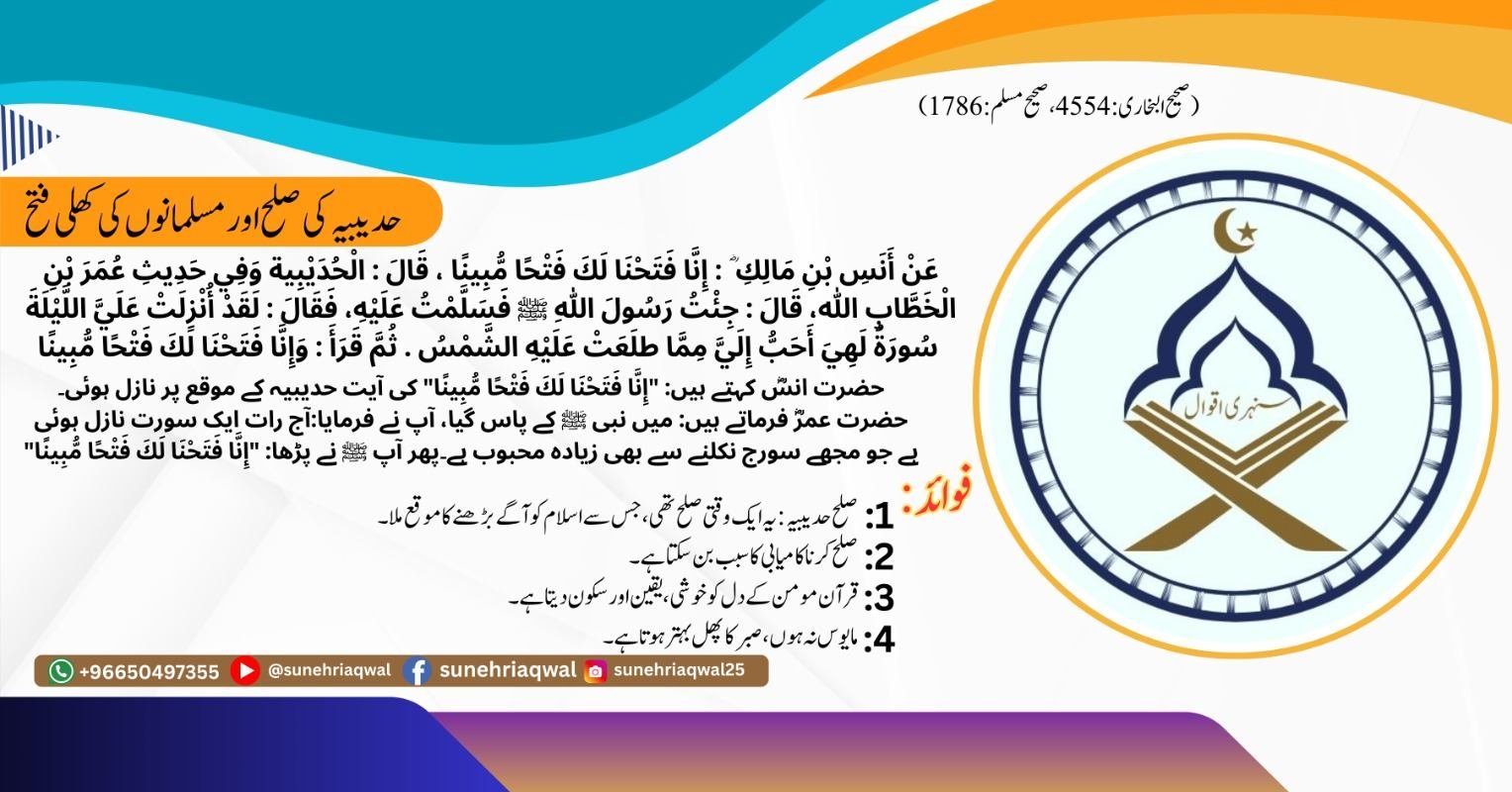 حدیبیہ کی صلح اور مسلمانوں کی کھلی فتح ( صحیح البخاری – 4554 صحیح مسلم – 1786 )