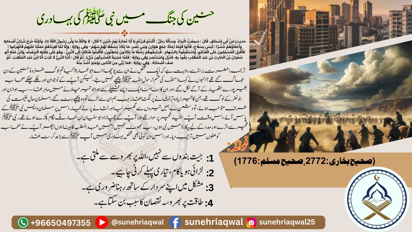 حنین کی جنگ میں نبی ﷺ کی بہادری ( صحیح البخاری – 2772 صحیح مسلم – 1776 )