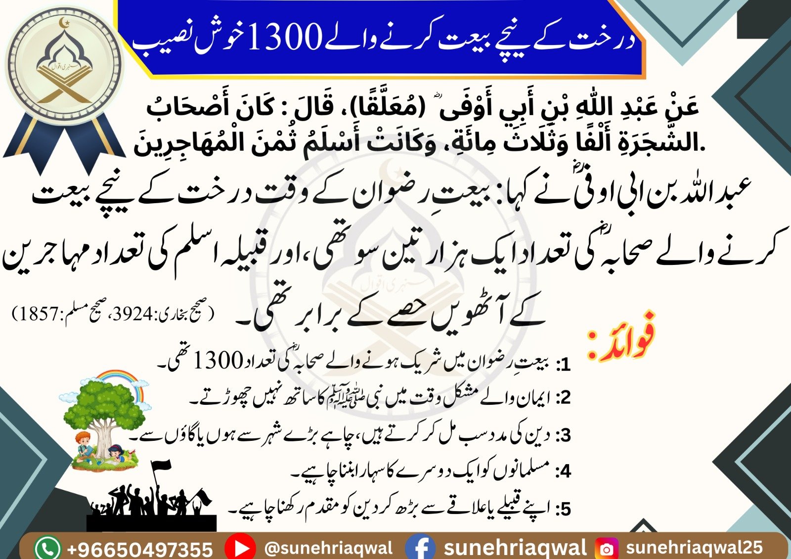 درخت کے نیچے بیت کرنے والے 1300 خوش نصیب ( صحیح البخاری – 3924 صحیح مسلم – 1857 )