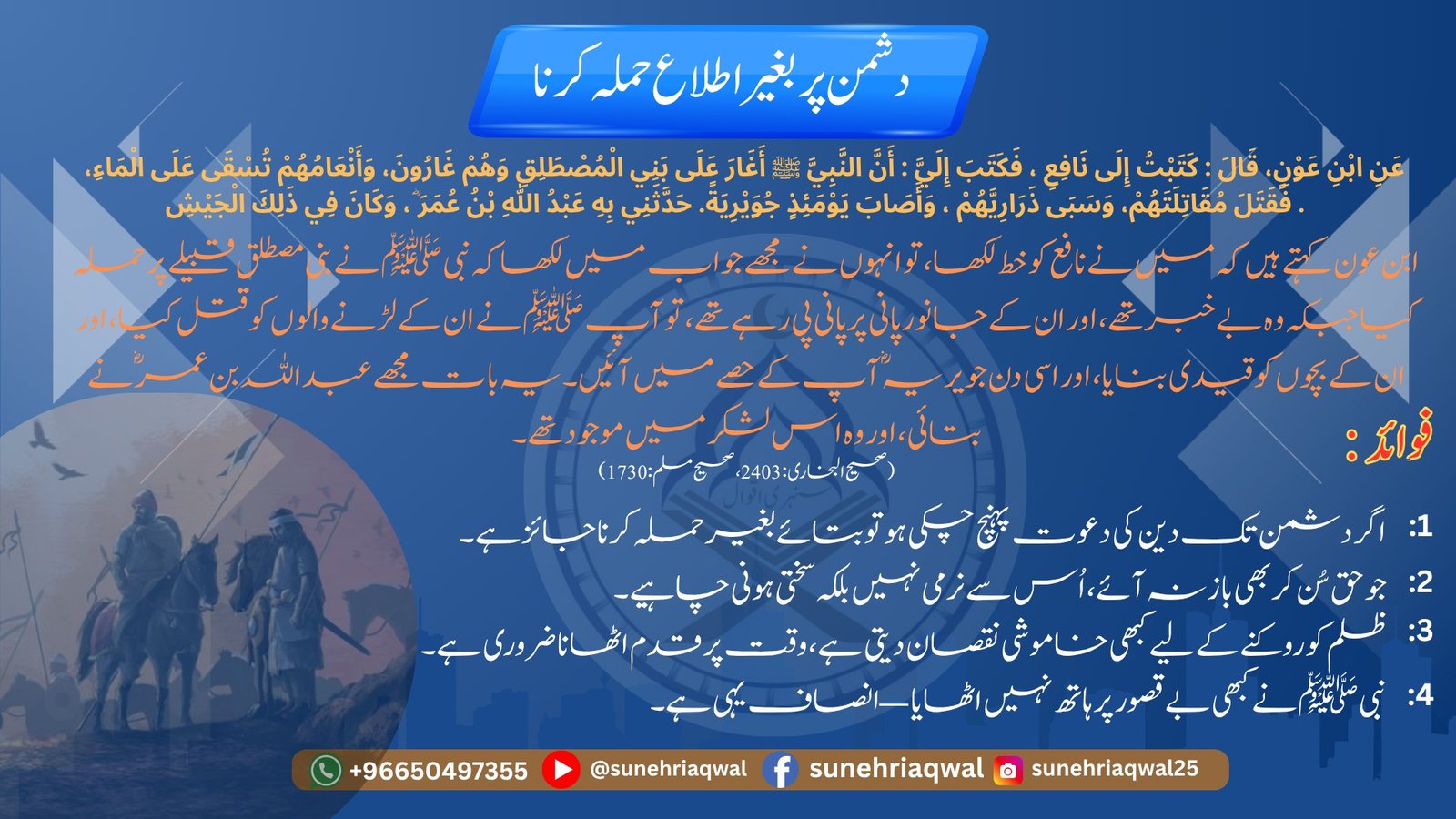 دشمن پر بغیر اطلاع حملہ کرنا( صحیح البخاری – 2403,صحیح مسلم – 1730)