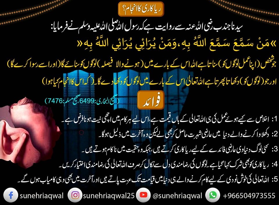 ریا کاری کا انجام؟ ( صحیح البخاری  6499 صحیح مسلم – 7476)