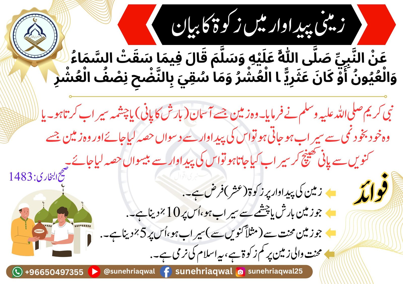 زمینی پیداوار میں زکوۃ کا بیان ( صحیح البخاری  – 1483 )