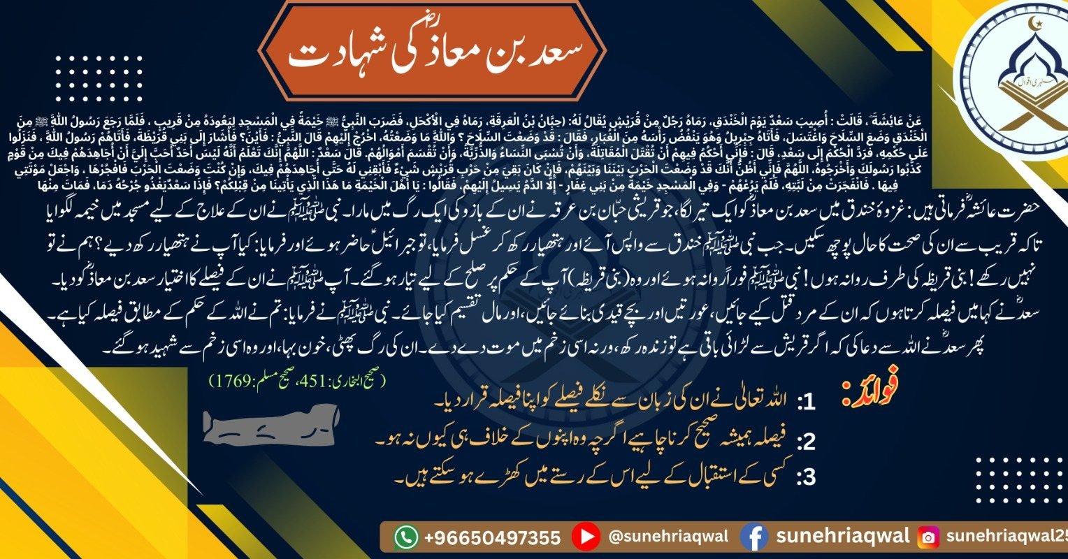 سعد بن معاذ رضی اللہ عنہ کی شہادت ( صحیح البخاری  – 451 صحیح مسلم – 1769 )