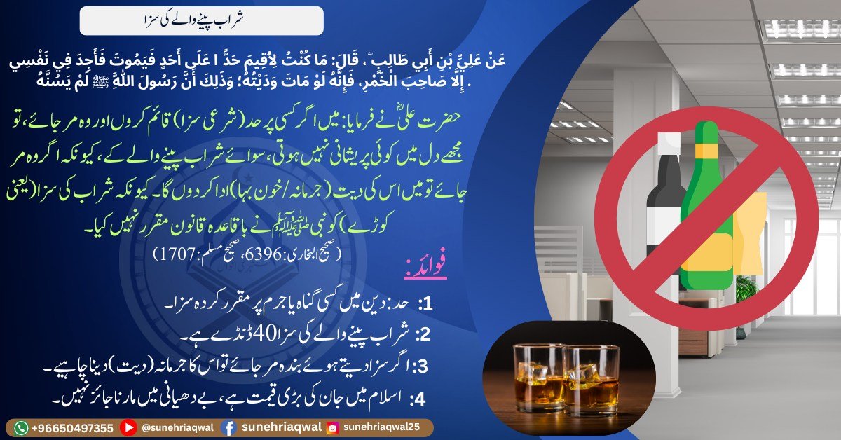 شراب پینے والے کی سزا ( صحیح البخاری – 6396 صحیح مسلم – 1707 )