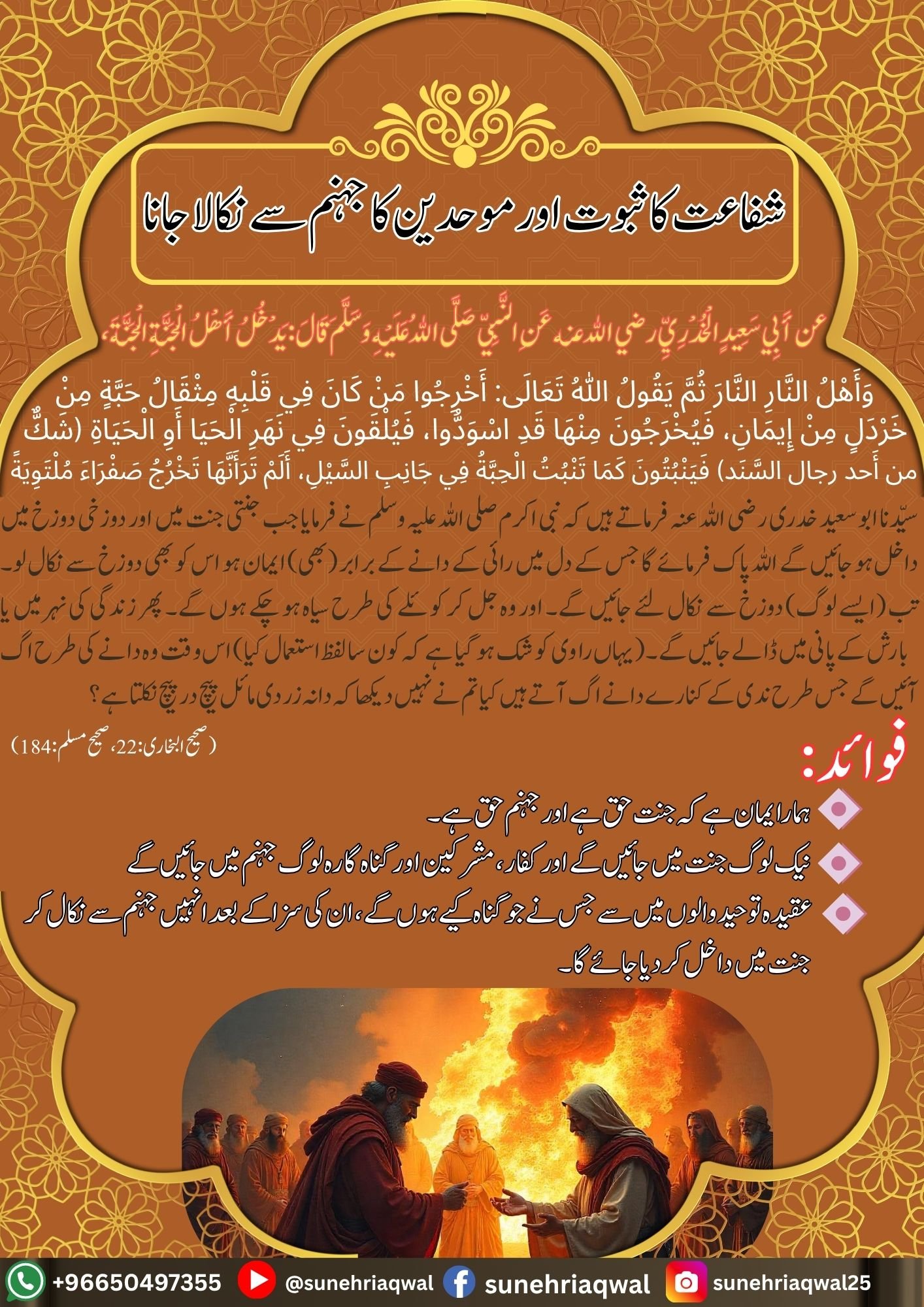 شفاعت کا ثبوت اور موحدین کا جہنم سے نکالا جانا (صحیح بخاری 22)