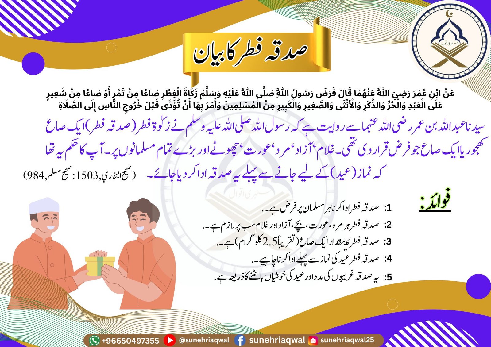 صدقہ فطر کا بیان ( صحیح البخاری  – 1503 صحیح مسلم -984 )