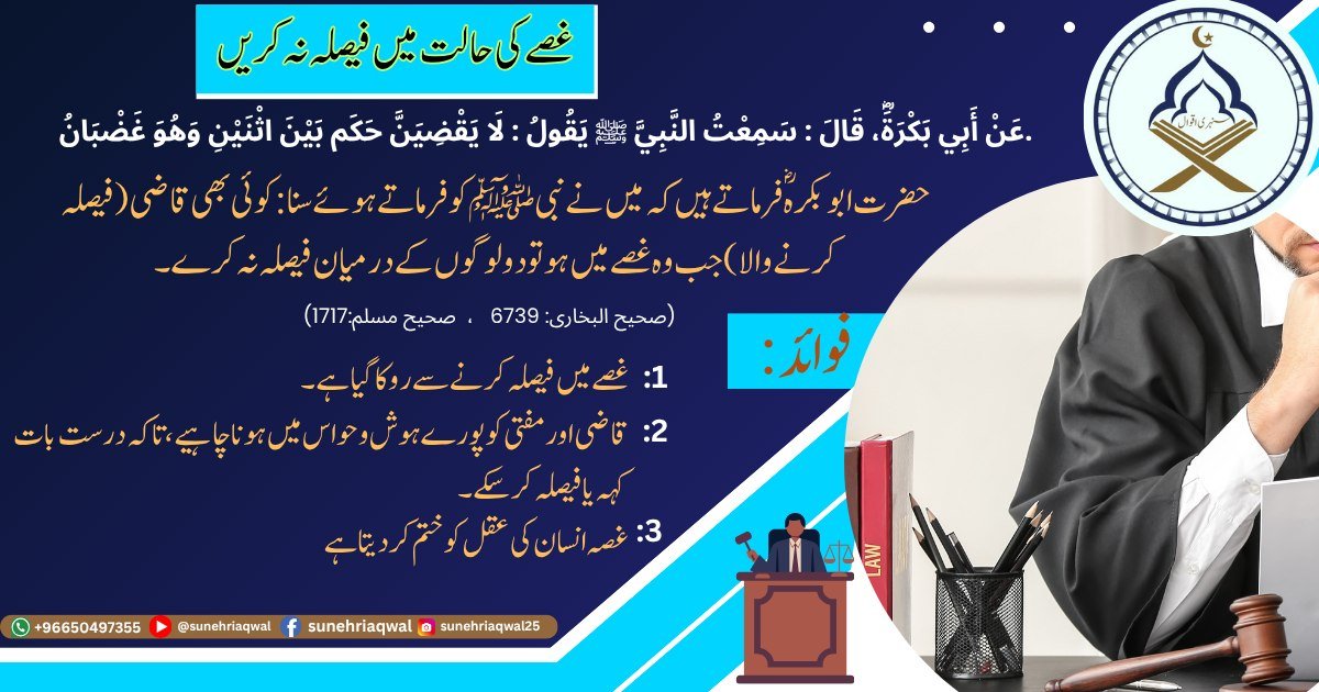 غصے کی حالت میں فیصلہ نہ کریں ( صحیح البخاری – 6739 صحیح مسلم – 1717 )