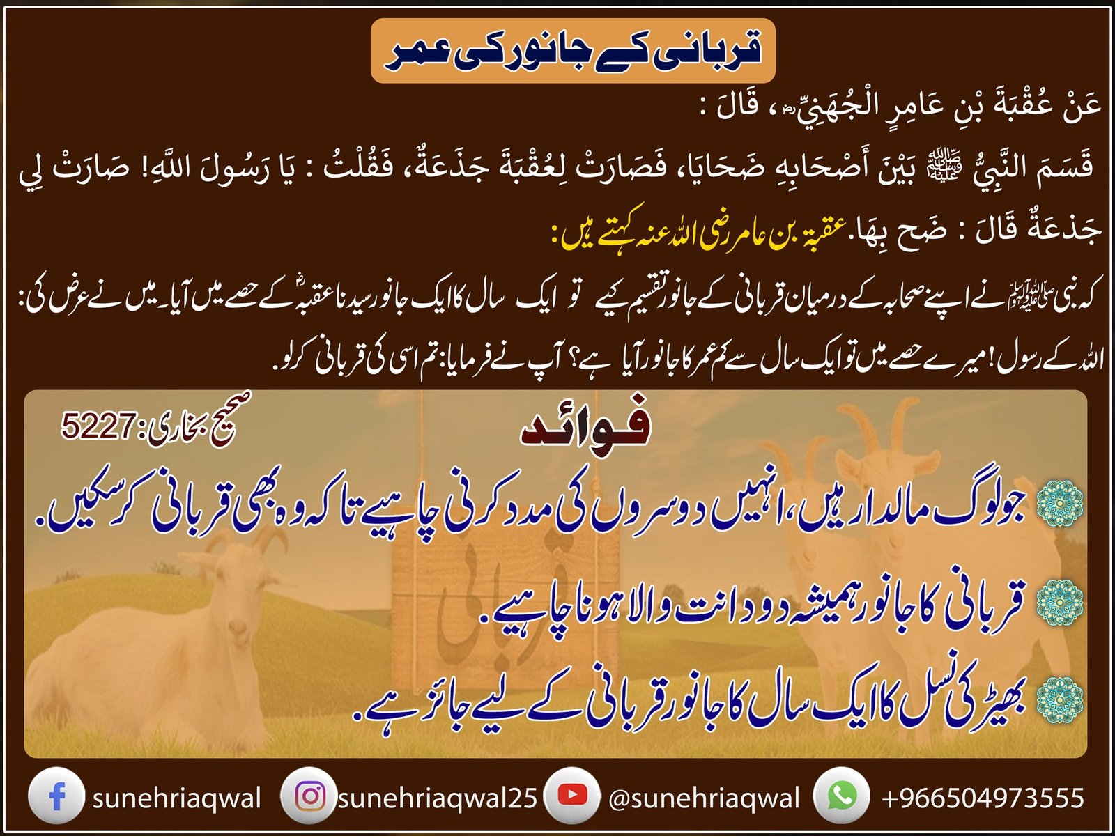 قربانی کے جانور کی عمر ( صحیح البخاری – 5227 )