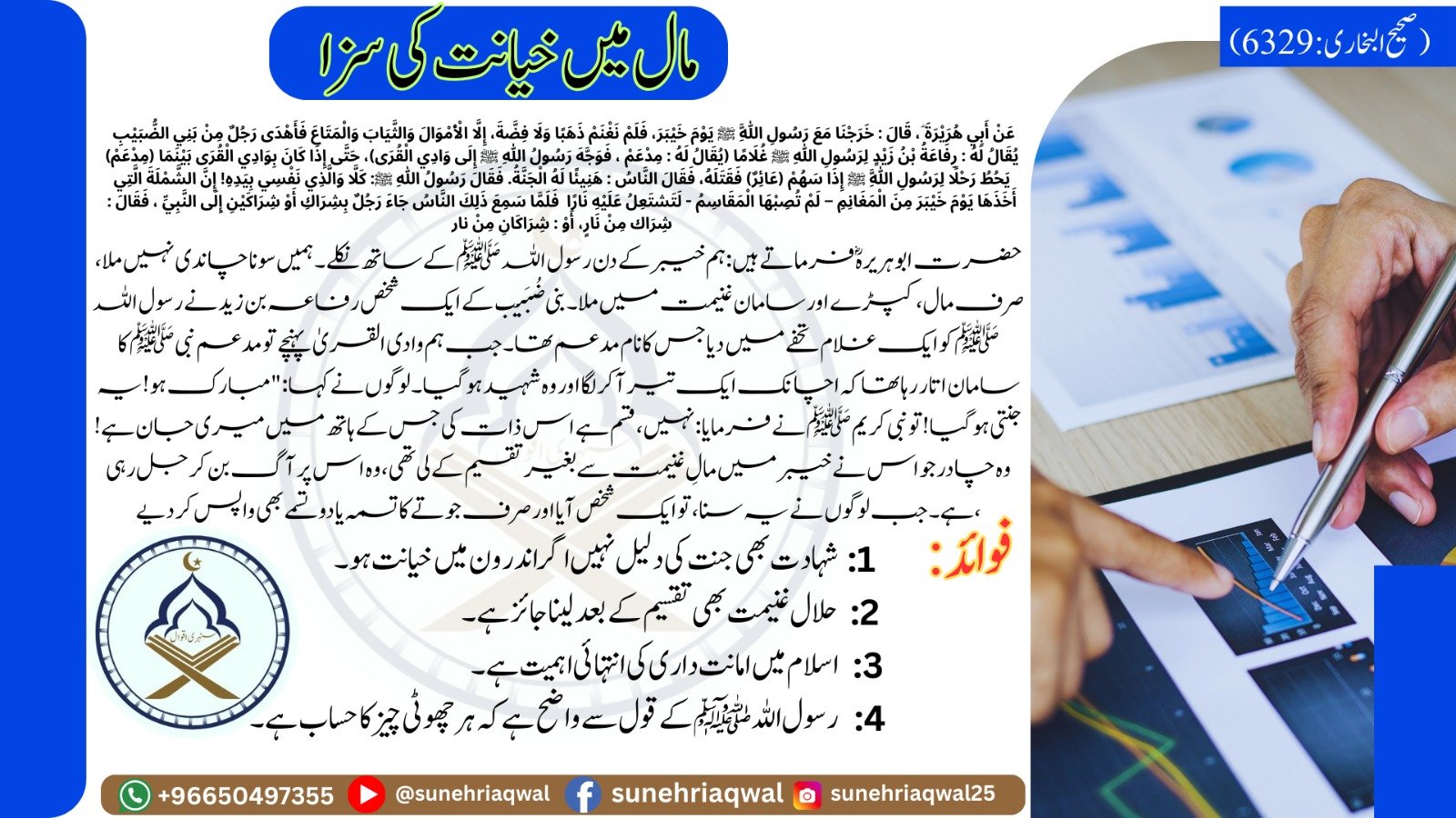 مال میں خیانت کی سزا ( صحیح البخاری – 6329 )