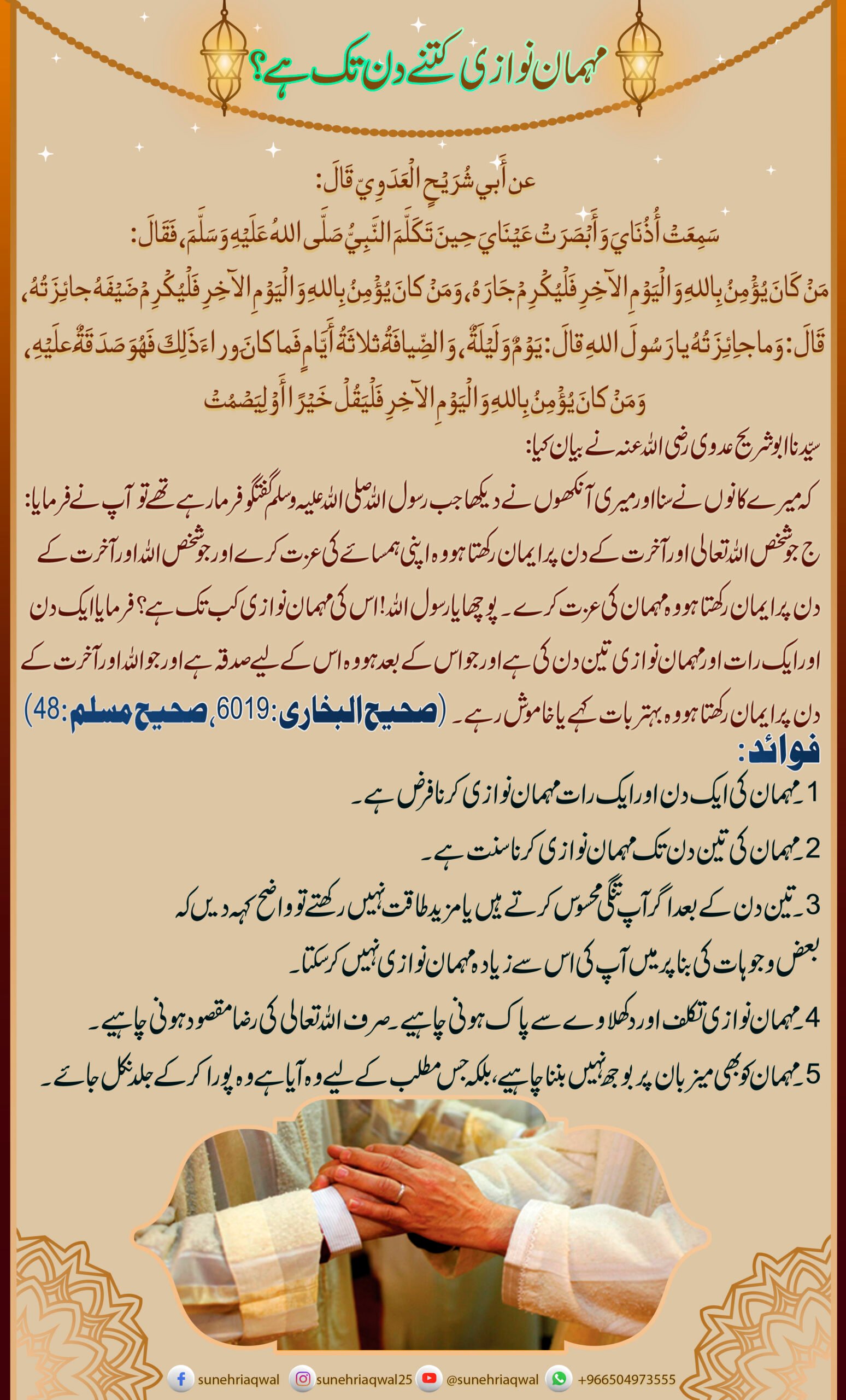 مہمان نوازی کتنے دن تک ہے ؟ (صحیح بخاری 6019)