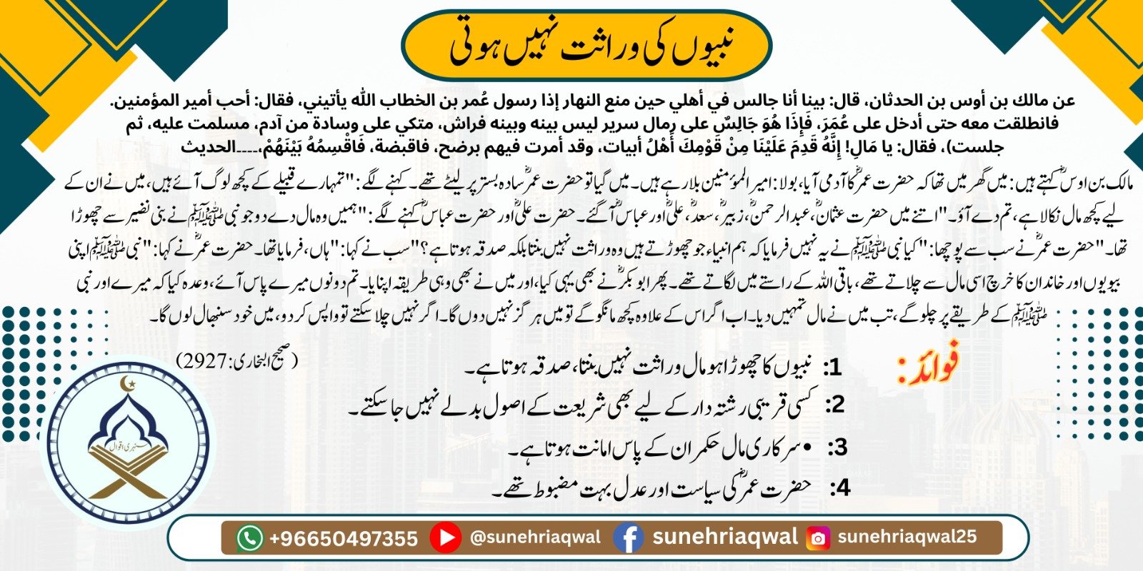 نبیوں کی وراثت نہیں ہوتی (صحیح بخاری 2927)