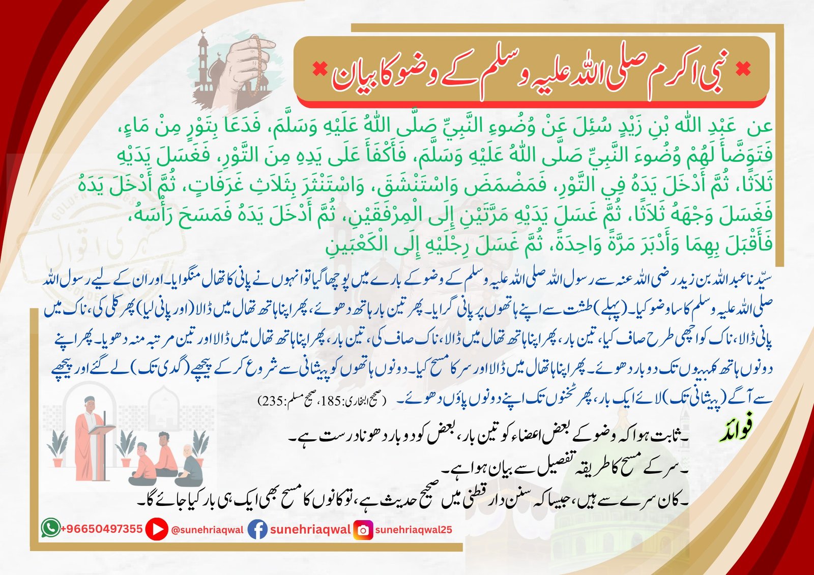 نبی اکرم صلی اللہ علیہ وسلم کے وضو کا بیان ( صحیح البخاری -185 صحیح مسلم -235 )