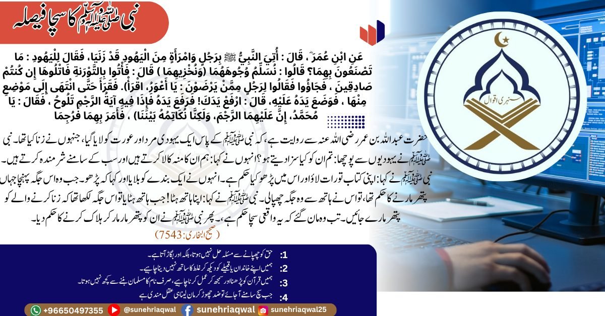 نبی صلی علیہ سکیم کا سچا فیصلہ ( صحیح البخاری – 7543 )