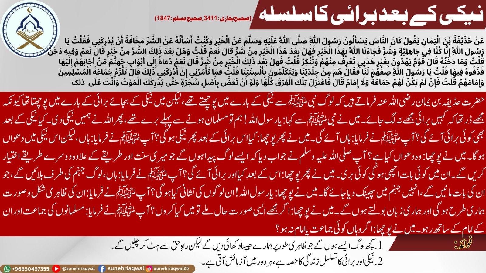 نیکی کا بعد برائی کا سلسلہ ( صحیح البخاری – 3411 صحیح مسلم – 1847 )