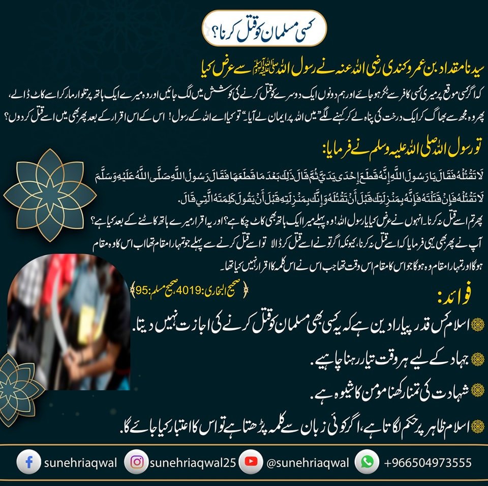 کسی مسلمان کو قتل کرنا ؟- ( صحیح البخاری 4019 صحیح مسلم – 95)