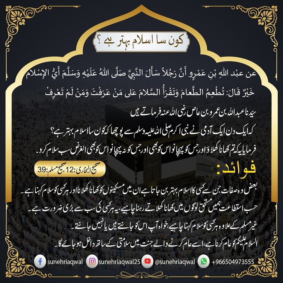 کون سا اسلام بہتر ہے ؟ ( صحیح البخاری 12 صحیح مسلم – 39)
