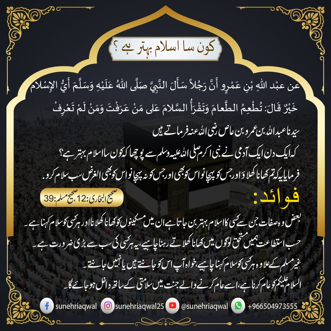 کون سا اسلام بہتر ہے ؟ (صحیح بخاری 12)