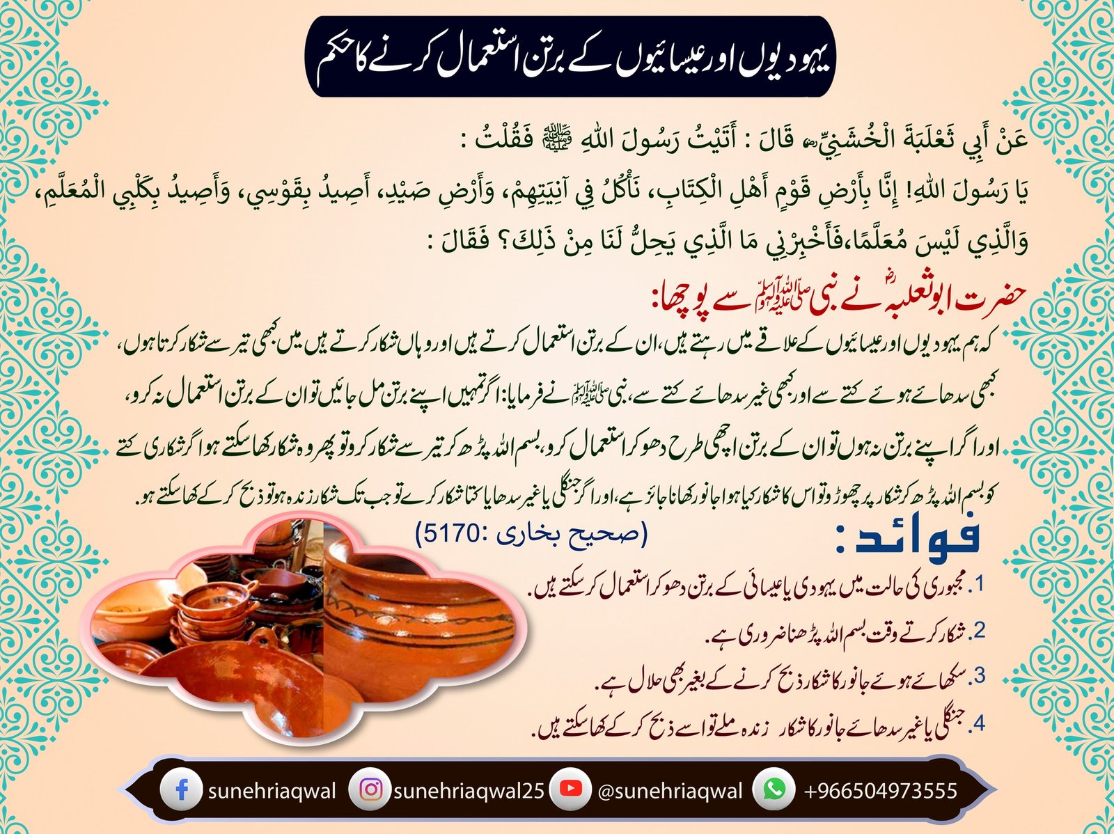 یہودیوں اور عیسائیوں کے برتن استعمال کرنے کا حکم ( صحیح البخاری  – 5170 )
